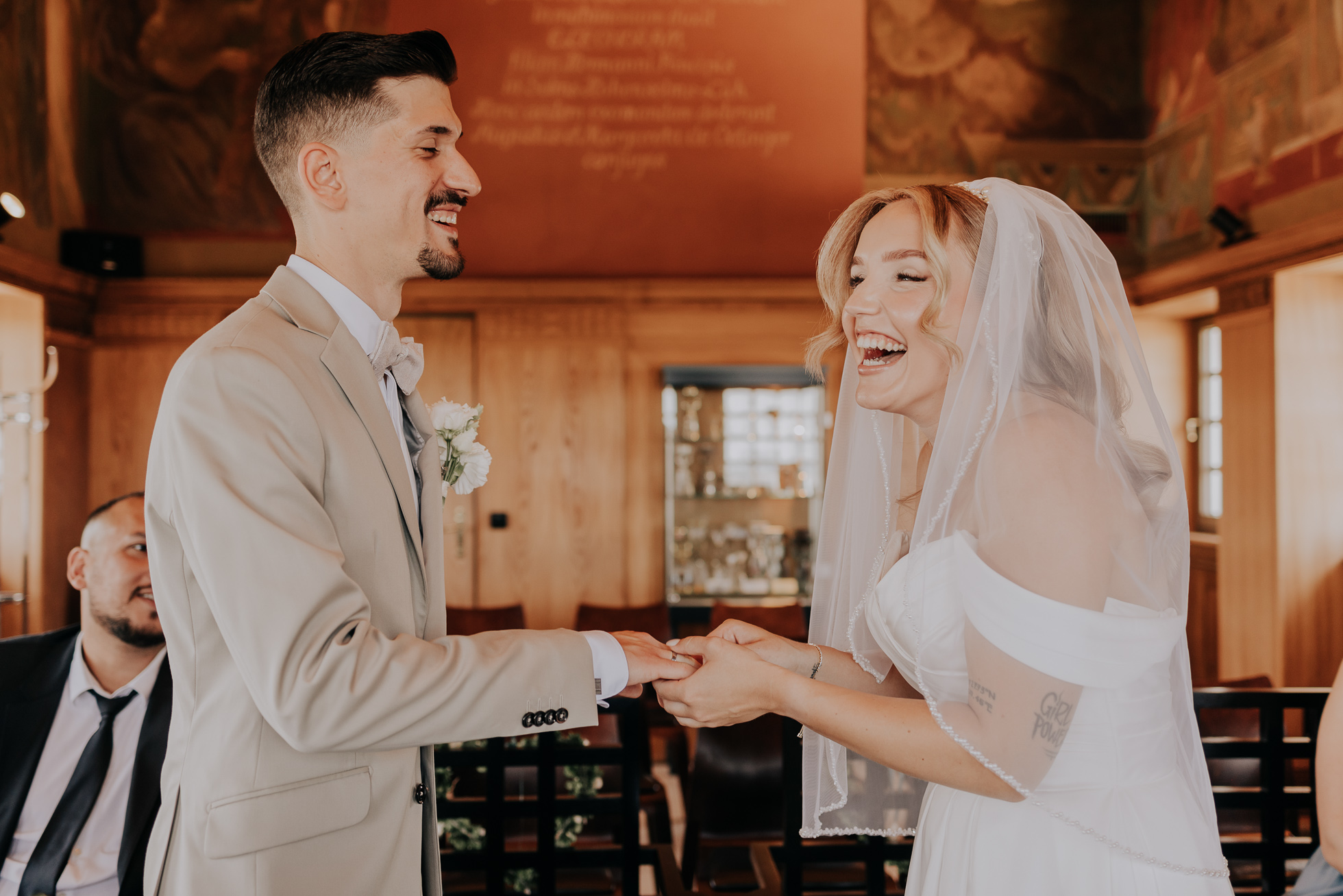 Nutzt den stillen Moment vor der Trauung gemeinsam, um noch einmal durchzuatmen, bevor die Aufmerksamkeit ausschließlich auf euch gerichtet ist.